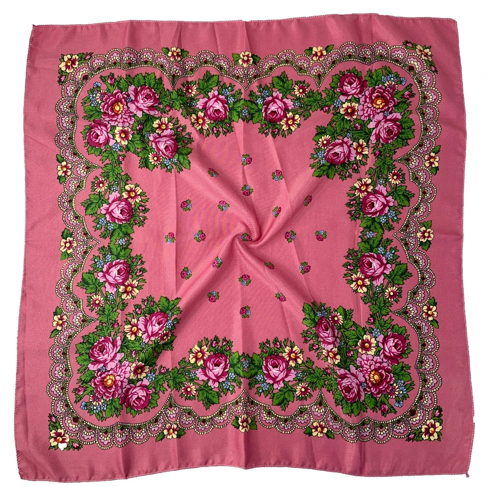 Bandana Carré Floral Rose – Charme Slavo-Romantique