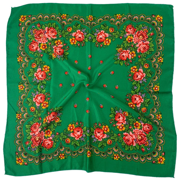 Faites entrer la nature dans votre garde-robe avec le Bandana Carré Floral Vert Printanier, une pièce inspirée des foulards folkloriques slaves. Sur un fond vert éclatant s’épanouissent des fleurs aux teintes vives – rouges, orangées et dorées – bordées d’arabesques fines pour un effet à la fois artisanal et élégant. Ce carré de 70 cm allie charme traditionnel et fraîcheur contemporaine.