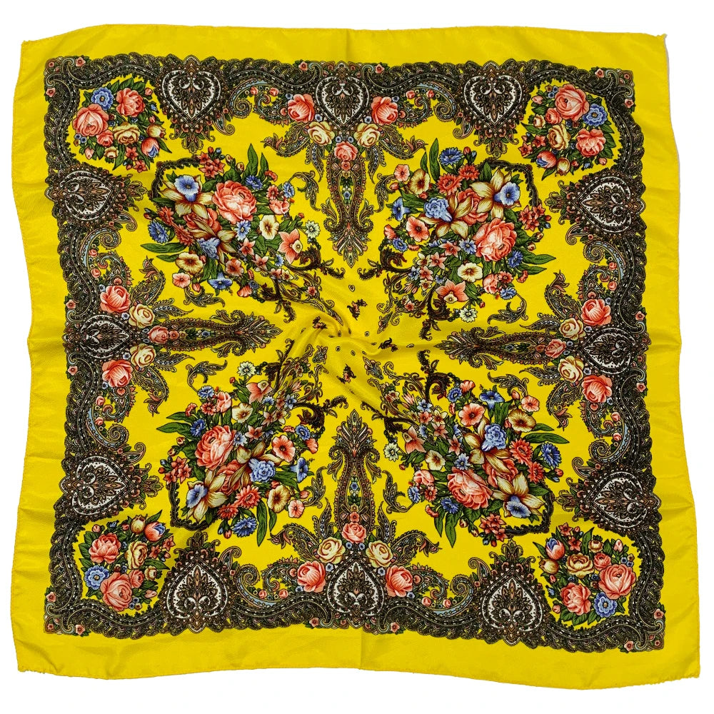 Bandana Carré Impérial Jaune – Élégance Florale et Tradition Orientale